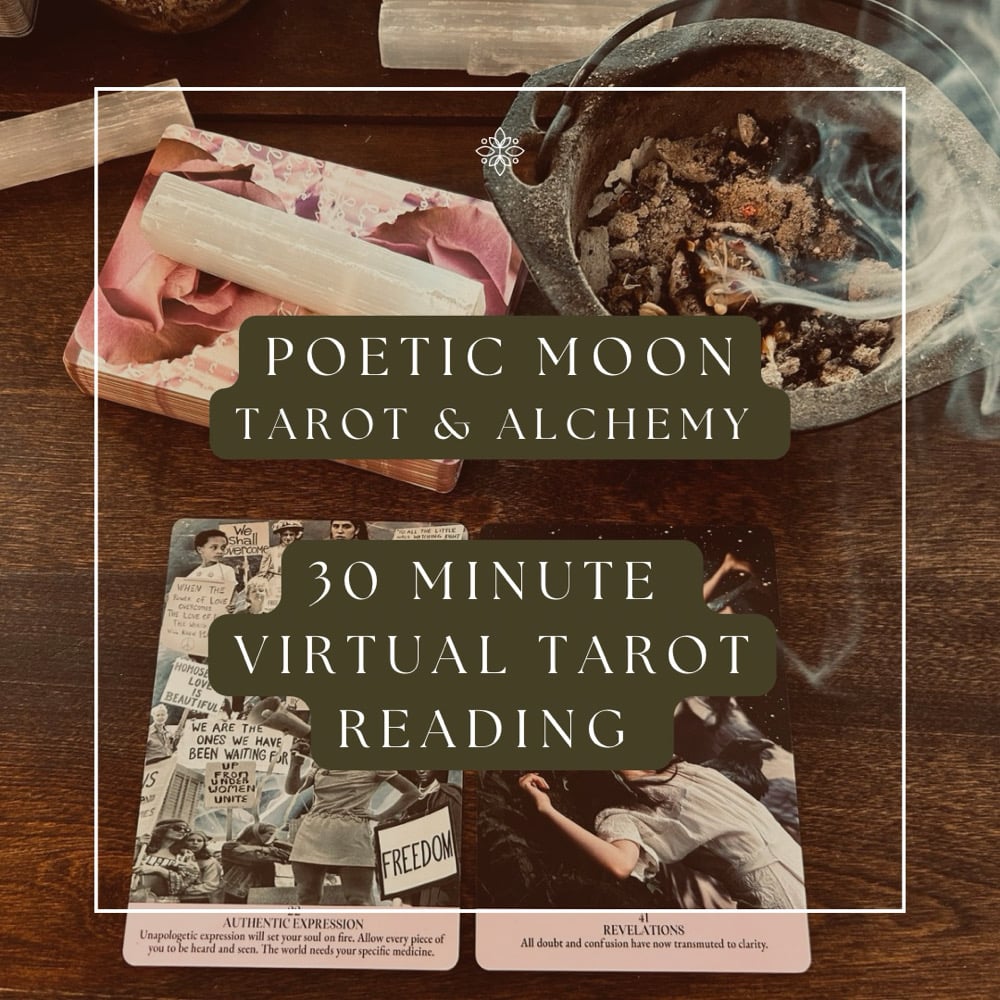 30-Minute Virtual Intuitive & Spiritual Guidance Tarot Reading with Bridget Moon. Your virtual session will be held via Zoom. Tarot readings are a sacred space of empowerment, offering insight into your soul’s journey and illuminating the path ahead. The messages that come through the cards guide us back to our truth, helping us tap into our inner wisdom and align with the divine flow of life. Together, we will explore the energies surrounding you, uncover your strengths, and open space for healing, clarity, and purposeful movement forward. Once your purchase is complete, I will contact you to schedule your reading. Thank you for trusting me with your energy. All sales are final on tarot appointments. No refunds. Twin Flame Energy Policy - Poetic Moon Readings: Please note: I do not confirm or assign twin flame labels in my readings. The belief or knowing that you are in a twin flame connection must come from you. If you feel that you are in a twin flame dynamic, I’m happy to read the energy around that connection and offer guidance. I will not tell someone whether they have a twin flame or if a specific person is their twin flame. That truth is deeply personal and intuitive. My role is to hold space and read the energy you bring forth, not to label or define your path for you. If you’re unsure, I’m always happy to offer a general love reading focused on what’s aligned for your heart, your healing, and your highest good. Thank you for honoring this boundary, it allows me to serve with truth, clarity, and respect for your soul’s journey.